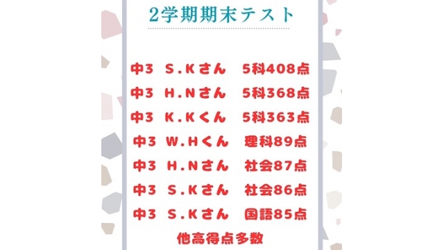 他塾から来られた生徒さんはほとんど成績が上がっています!